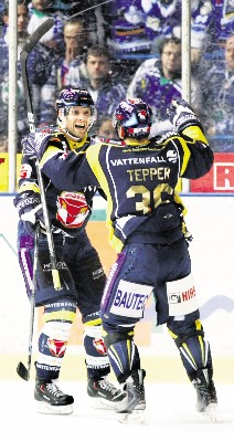 Die Entscheidung fiel kurz vor Schluss, als den Eislöwen in Überzahl ein Fehlpass unterlief. Tepper scheiterte nach seinem Alleingang zwar an Briggs, aber Chris Straube staubte zum 3:1 ab. Danach musste Dresden alles riskieren, nahm den Torwart hinaus, Jarrett verlor den Puck erneut an Tepper, und der lief ganz allein und unter dem Jubel der Füchse-Fans auf das leere Dresdner Tor zu, spielte den Puck ganz lässig mit links ins Netz.
