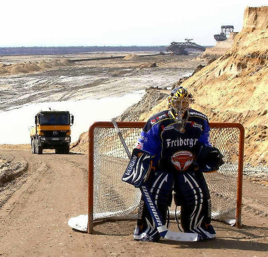 Fototermin im Tagebauch Nochten: Torhüter Ryan MacDonald soll auch in der kommenden Saison ein wichtiger Rückhalt für die Lausitzer Füchse sein.Foto: Mogollones/mmo1