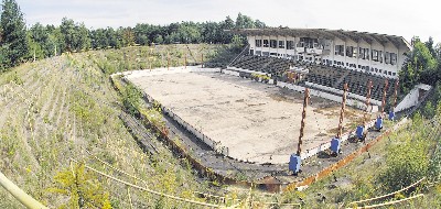 Das Kunsteisstadion Wilhelm Pieck, so der volle Name des alten Freiluftstadions, wird ab dem 11. Oktober von zwei Firmen abgerissen. Die Kosten betragen insgesamt 660000 Euro. Foto : J. Rehle