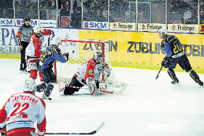 Auch im Schlussdrittel überzeugt am ehesten die junge dritte Reihe, die noch den gefährlichsten Eindruck hinterließ. Die Füchse versuchten zwar alles, hatten die wohl beste Chance in Unterzahl, als Grosch allein vor dem Gästetorwart Güttner auftauchte. Auch bei einem Szabo-Versuch hatten die Fans schon den Torschrei auf den Lippen. Die Crimmitschauer aber waren selbst in einigen Situationen dem vierten Treffer nahe. So vergab Rau in Überzahl aus Nahdistanz. In den Schlussminuten inclusive einer Überzahl schafften es die Füchse nicht mehr, gefährliche Situationen zu kreieren – und so fuhren die Eispiraten als insgesamt verdiente Sieger nach Hause. Nun gilt es am Sonntag, in Freiburg verlorenen Boden wieder gut zumachen. Sonst dürfte eine Diskussion wieder aufflammen: die um die Stärke der Ausländer (außer Torwart MacDonald) bei den Füchsen. Nicht umsonst war gestern die dritte Reihe die beste, während von Forgie nichts, von Szabo, Hartmann und Rawlyk nur wenig zu sehen war. (Von Ronny Reddo und Frank Thümmler)