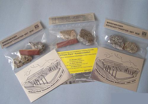 In diesem enthalten sind ein Stückchen Bande, ein Teil der Betoneisfläche und etwas Granit von den Zuschaueraufgängen. Außerdem befinden sich im Päckchen auch eine Postkarte vom alten Stadion und ein Echtheitszertifikat. Mit dessen Nummer nimmt jeder Käufer gleichzeitig an einer Tombola der Füchse teil. Der Reinerlös des Verkaufs fließt an den Nachwuchs.